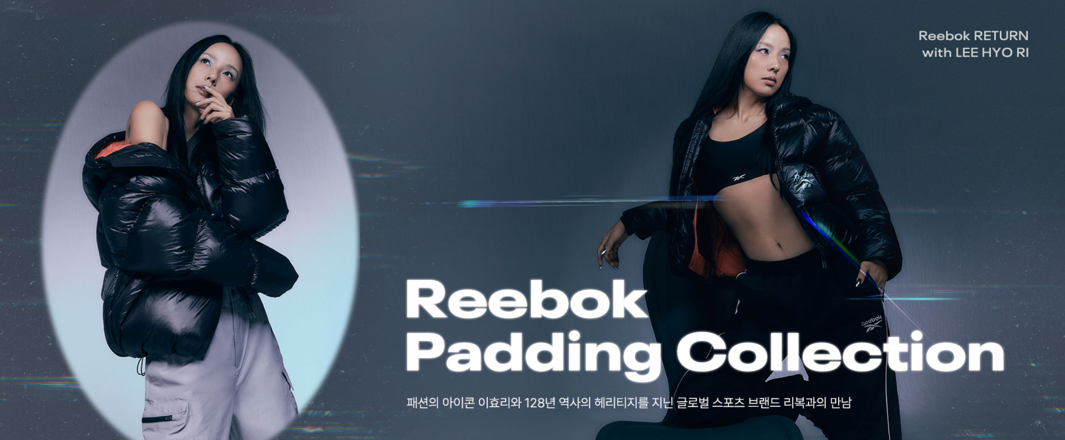 - 다음으로 리복은 정말 고유의 헤리티지를 가지고 있죠? 리복 고유의 헤리티지와 이효리 씨의 스포티하고 액티브한 트렌디함이 어우러지면서 너무 이쁜 패딩입니다. 유니섹스 아이템으로 남녀노소 상관없이 입을 수 있는 패딩이기도 합니다.